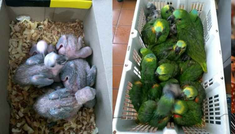 Durante a vistoria no veículo, foram localizadas duas caixas com os 24 filhotes de papagaio no banco traseiro da caminhonete. Os autores disseram que pagaram R$30 em cada animal que seriam revendidos de R$500 a R$600.