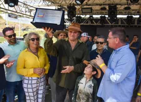 Durante a cerimônia, Bira fez a entrega do título de Cidadão Corumbaense a Almir Sater, comenda aprovada por todos os vereadores. Almir agradeceu a Câmara, se disse sensibilizado e que se sente corumbaense há muito tempo: “a cidade é minha inspiração, agora sou filho oficialmente”.