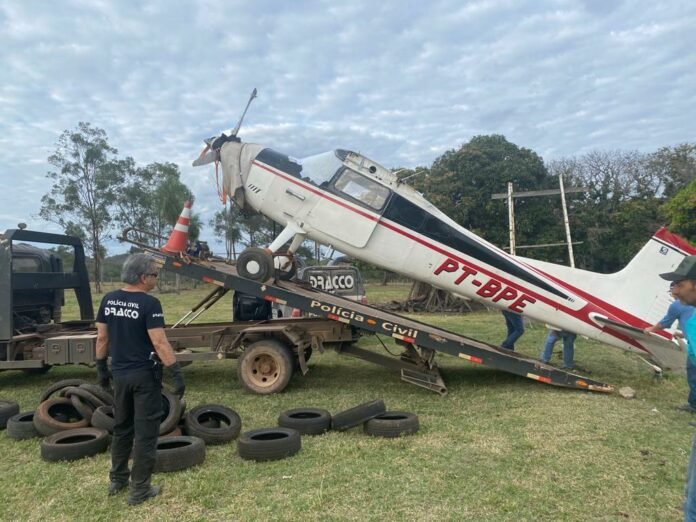 De acordo com as informações da assessoria de imprensa da Polícia Civil, o avião modelo Cessna Aircraft, com prefixo PT-BPE, estava sendo utilizada para o tráfico de drogas.