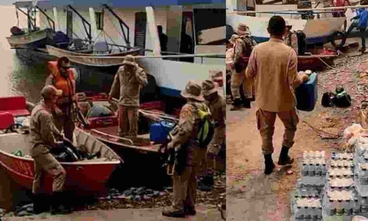 As equipes abasteceram três barcos com mantimentos e equipamentos para montar a base avançada para os Bombeiros em uma propriedade rural próxima ao fogo. A ideia é que os militares fiquem no local 24 horas por dia, atuando no combate às chamas dia e noite.