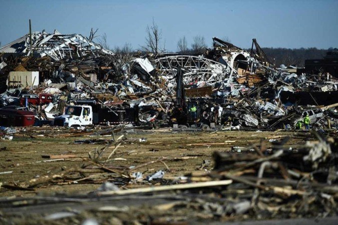 A fábrica de velas, uma empresa familiar, criou um fundo de emergência para ajudar as famílias. Em outros lugares de Kentucky, além dos estados de Missouri, Illinois, Tennessee e Arkandas, cenas semelhantes foram registradas, com prédios destruídos, infraestruturas de metal retorcidas, veículos capotados, árvores caídas e tijolos espalhados pelas ruas.