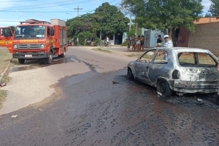 Carro pega fogo no bairro Loteamento Pantanal