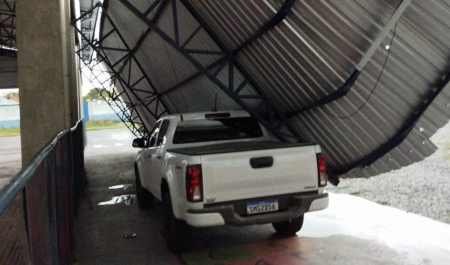 Chuva e vento foram mais fortes na área rural de CorumbáNo Colégio Salesiano de Santa Teresa, parte da estrutura da quadra desabou sobre um veículo, causando danos materiais — não houve feridos.