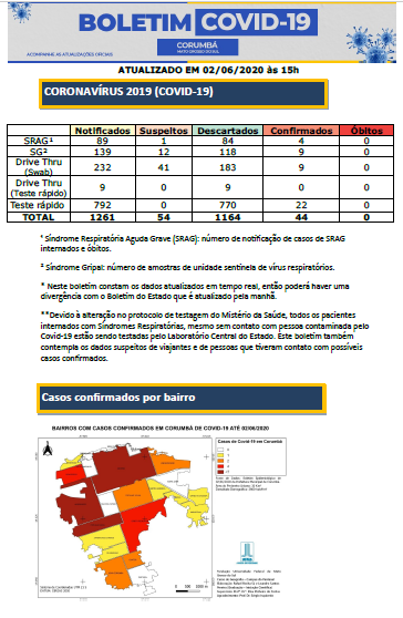 Veja o Boletim na íntegra no link: https://www.corumba.ms.gov.br/wp-content/uploads/2020/06/Boletim-dia-02-06.pdf
