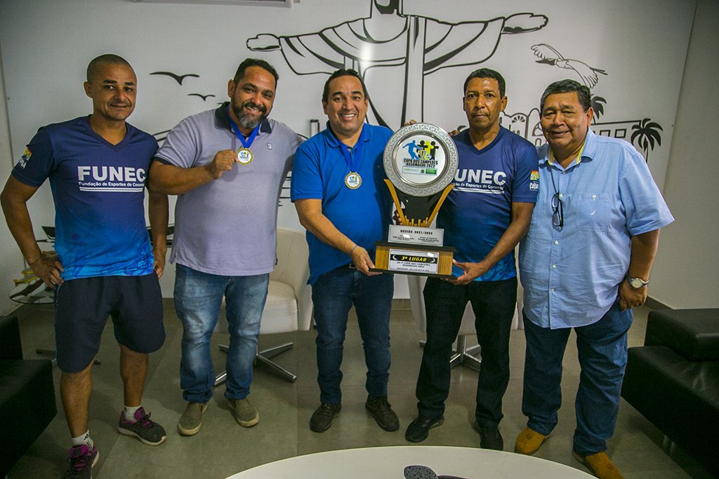 abril 12, 202210:08 amA equipe de futebol da Prefeitura Corumbá conquistou o terceiro lugar na ‘1ª Copa dos Campeões Assomasul’. Realizada em Aquidauana no sábado, dia 09, a competição reuniu todos os campeões da ‘Copa Assomasul’ desde sua criação em 2001. A taça foi entregue ao prefeito Marcelo Iunes no final da manhã desta segunda-feira, 11 de abril. “É motivo de muita satisfação. A Prefeitura tem dado total apoio para equipe, que é formada por servidores públicos do município”, disse o prefeito Marcelo Iunes ao parabenizar o time.