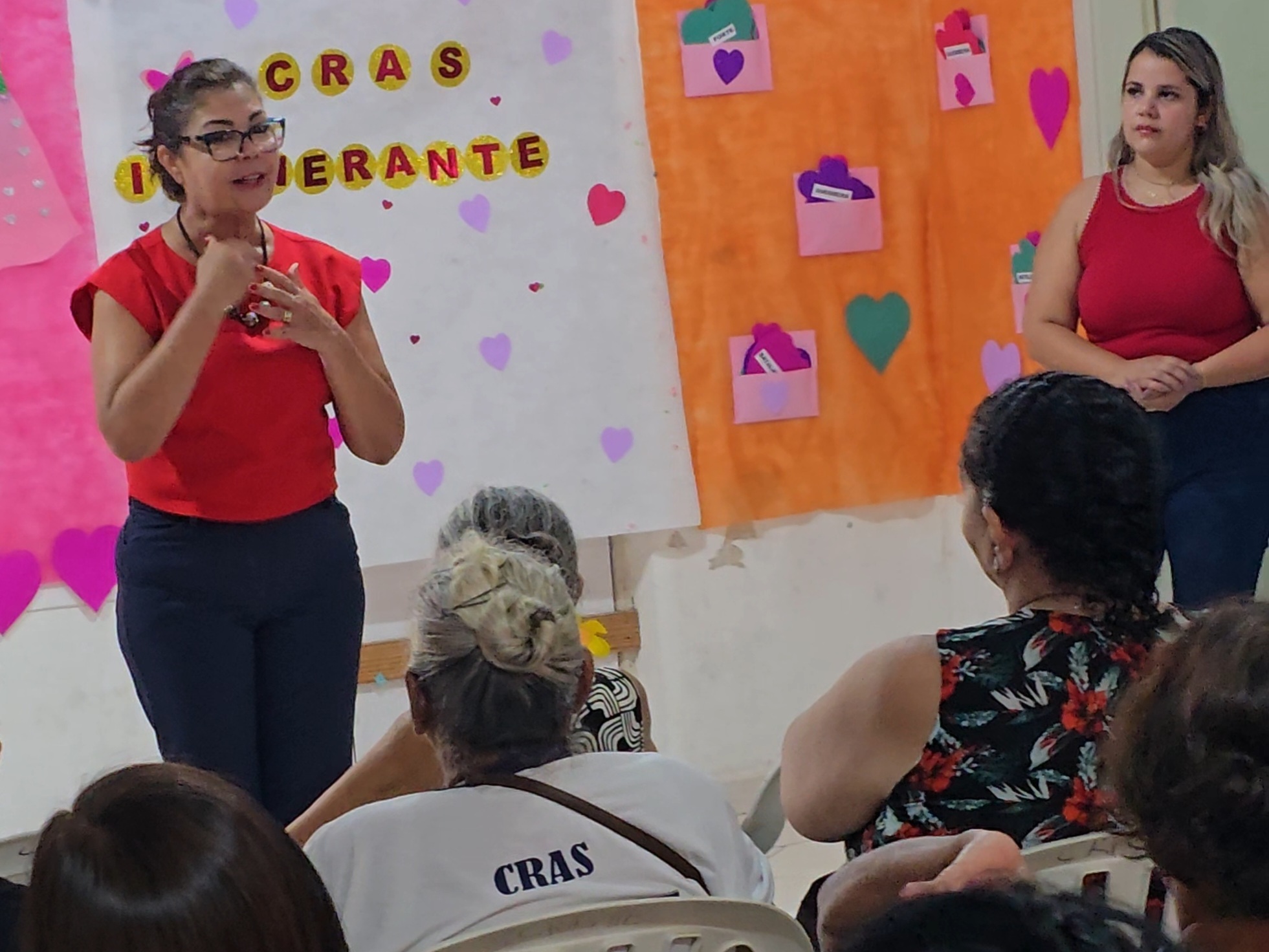 A ação contou com a presença da vice-prefeita e secretária municipal de Assistência Social e Cidadania, Bia Cavassa, da gerente de Proteção Social Básica, Nelma Dib, e da coordenadora do CRAS Itinerante, Gediely Cavalcante Gomes, que acompanharam o encontro e dialogaram com as participantes sobre a importância da valorização feminina e do acesso às políticas públicas.