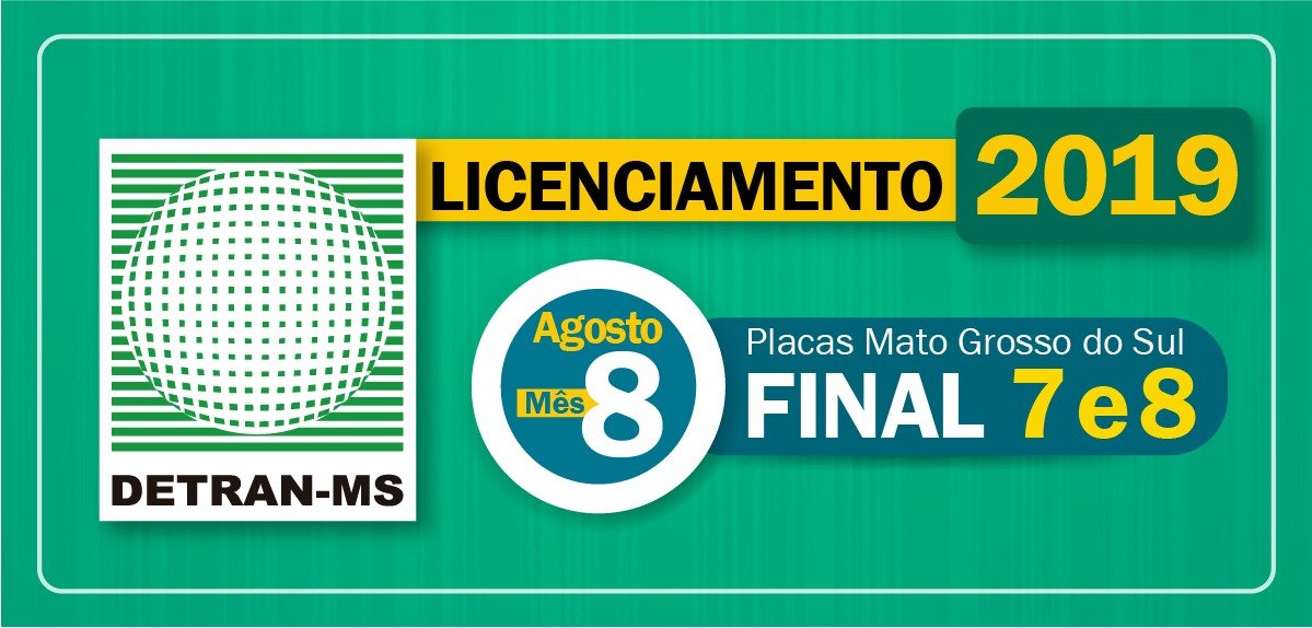 agosto 2, 201910:03 amO mês de agosto começou e agora é o período para pagar o licenciamento de veículos com placa final 7 e 8. Para pagar o licenciamento, o usuário precisa emitir a guia em qualquer agência ou mesmo pelo site www.detran.ms.gov.br com possibilidade de efetuar o pagamento nas agências do órgão ou em bancos conveniados.