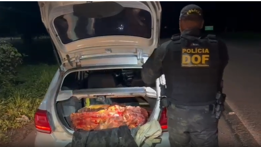 A equipe realizava bloqueio quando abordou um veículo VW Gol. Durante a vistoria, os militares encontraram uma grande quantidade de carne bovina espalhada sobre os bancos e no porta-malas do carro. Questionados sobre a origem do produto, os ocupantes apresentaram informações contraditórias e não possuíam nota fiscal ou qualquer comprovante de procedência legal.