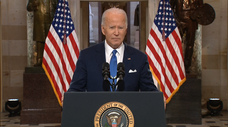 Biden descreveu os homens e mulheres que invadiram o Capitólio há um ano atrás como ameaças perigosas à democracia americana.