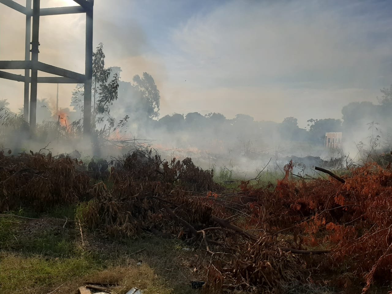 Incêndio em terreno próximo à ferrovia na Rua Oriental (Foto: Divulgação/Corpo de Bombeiros)