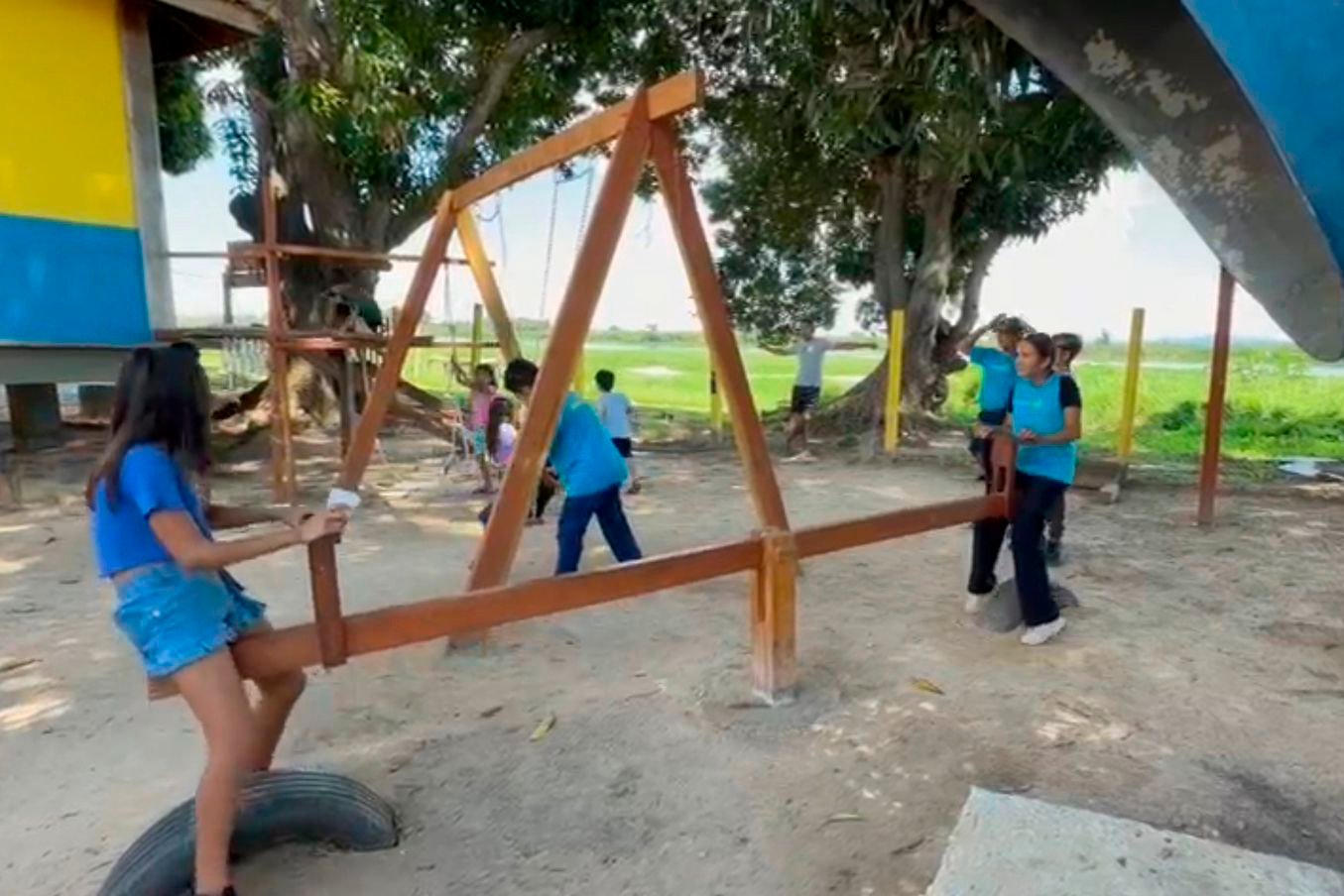 Além disso, foram realizadas intervenções estruturais essenciais, como a instalação de um sistema mais eficiente de captação, armazenamento e tratamento de água, garantindo melhores condições de funcionamento da escola e suporte às atividades desenvolvidas. Os espaços físicos também foram requalificados, com a criação de ambientes integrados à natureza, como praça das águas, parque naturalizado e áreas de convivência.