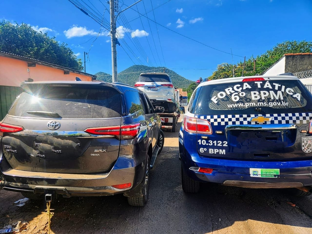 maio 30, 202312:45 pmCorumbá MS, por volta de 11h desta sexta-feira, a equipe de Força Tática foi acionada pelo COPOM (190), que informou que dois veículos, Toyota SW4, teriam entrado na cidade, sendo que um deles estava sendo guinchado, ambos indo em direção ao bairro Nova Corumbá.