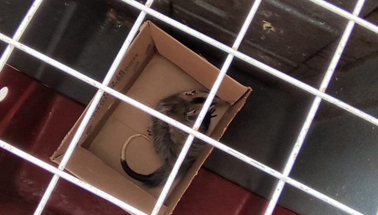 O animal silvestre estava dormindo dentro de uma lixeira, na sala 1, de Informática. A PMA fez a captura e como o gambá não apresentava nenhum ferimento, foi solto em seu habitat natural.