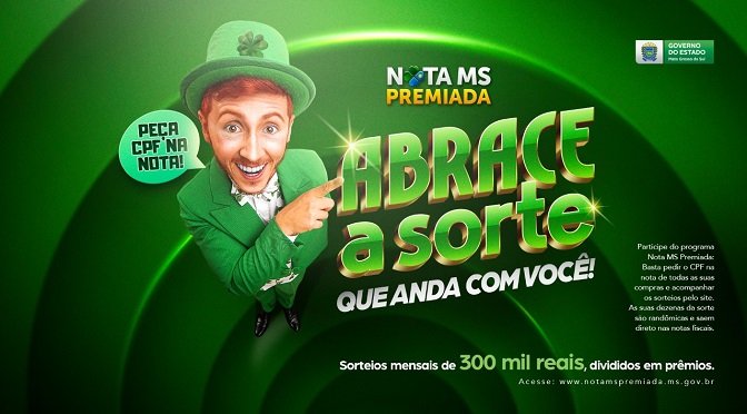 maio 11, 202010:01 amOs consumidores que foram contemplados com os prêmios do sorteio Nota MS Premiada precisam efetuar o cadastramento no site www.notamspremiada.ms.gov.br para informar os dados bancários, e receber o valor do prêmio em conta. Não será exigido documento físico para o recebimento do prêmio.