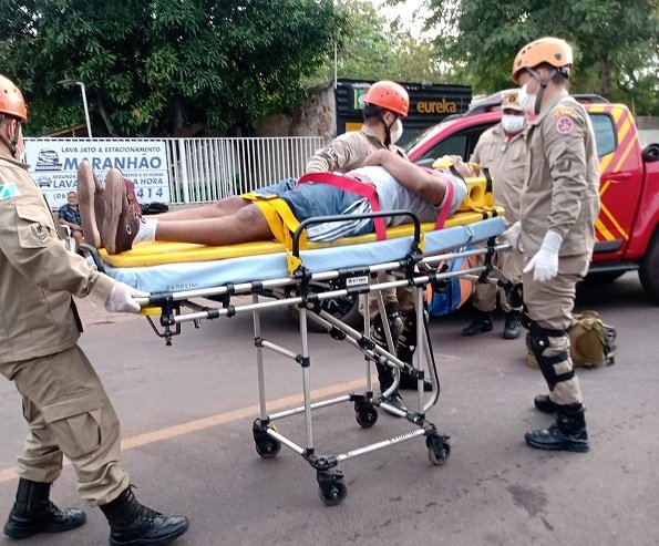 No local foi socorrido um homem de 40 anos, que se encontrava consciente e orientado, alegando algias no ombro esquerdo e cefaléia sem sinais e sintomas de fratura.