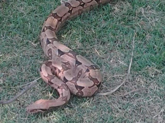Jiboia é capturada ao comer 4 filhotes de gato em quintal de residência