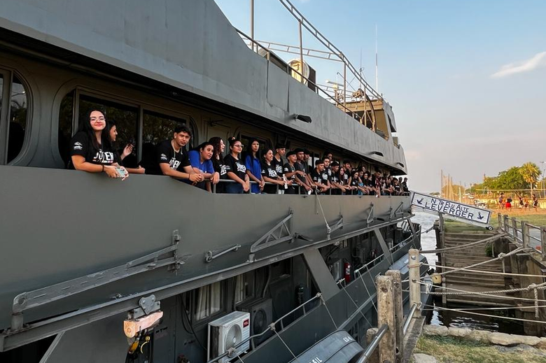 Nesta terça-feira (19), 50 jovens aprendizes visitaram as instalações do navio Lerverger atracado no porto, eles tiveram a oportunidade de conhecer de perto as funções da vida militar em defesa da soberania nacional. No mesmo dia, idosos do “Lar São Vicente de Paulo” e do Centro de Referência de Assistência Social “Maria Ester Ayub” receberam doações de roupas. Nesta quarta (20), outras atividades estão previstas, como a realização de palestra socioeducativa, com o tema “Navegando para o futuro”, ministrada para alunos da Escola Municipal Nossa Senhora de Caacupê.