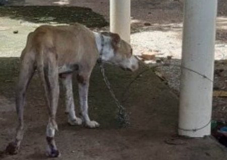 No começo da semana, a Polícia Civil recebeu a denúncia de que um cachorro de grande porte estaria amarrado em uma casa, em um arame farpado. Durante verificação dos fatos, a equipe encontrou no lado externo da residência um animal, debilitado, que não conseguia ficar em pé, além de outro cachorro que aparentava desnutrição.