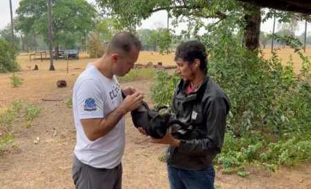 Veterinário atendendo a cadelinha do Flávio Ricardo na Fazenda Milagres em 2023“A expedição leva médicos, dentistas e veterinários que atendem famílias que vivem isoladas na maior planície alagável do planeta”, contou Paulo. “Naquela época, ele foi atendido e a gente acabou conversando, criou-se uma amizade.”