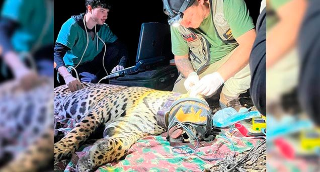 Pela primeira vez equipe médica faz exame de Raio-X em onça pintada dentro do Pantanal