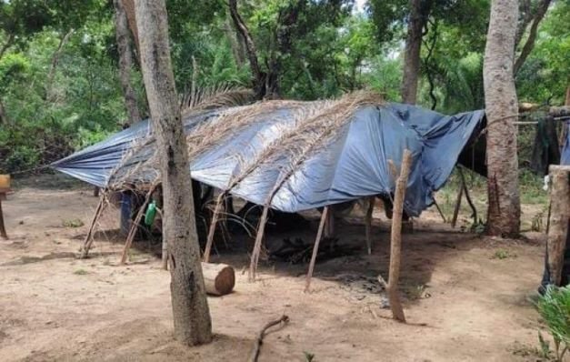 Os alojamentos eram improvisados com lonas, sem qualquer proteção contra animais ou condições climáticas.