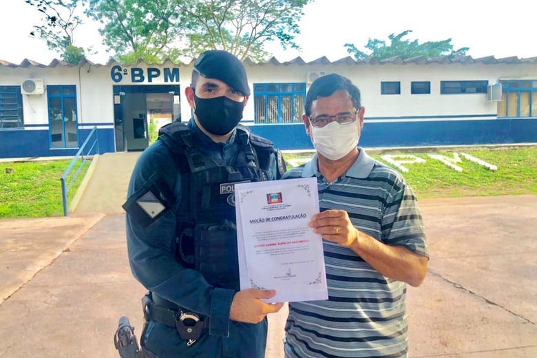 O Polícial Militar teve a quinta-feira movimentada com a visita de Edson Souza e do presidente da Câmara de Vereadores de Corumbá, Roberto Façanha, no Batalhão. George Gabriel recebeu a Moção das mãos do próprio presidente do Poder Legislativo corumbaense, autor da iniciativa que foi aprovada por unanimidade pelos demais partes da Casa de Leis. Roberto Façanha destacou a atitude do PM.