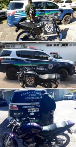 julho 11, 201811:13 amA Polícia Militar de Corumbá recuperou três motocicletas com registros de furto e roubo na terça-feira, 10 de julho. O primeiro caso foi às 09h na rua Cyríaco de Toledo, bairro Nova Corumbá. Após denúncia pelo 190, equipe da Força Tática foi até o local, nas proximidades do Detran, e viu um indivíduo mexendo em uma moto com as características informadas na denúncia. O suspeito, de 21