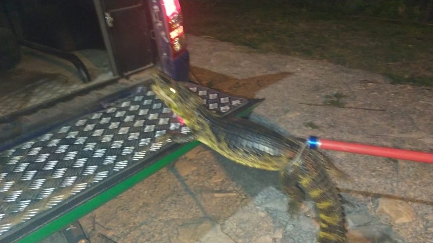 PMA de Corumbá captura de jacaré de quase dois metros no condomínio da marinha em Ladário e realiza soltura no pantanal