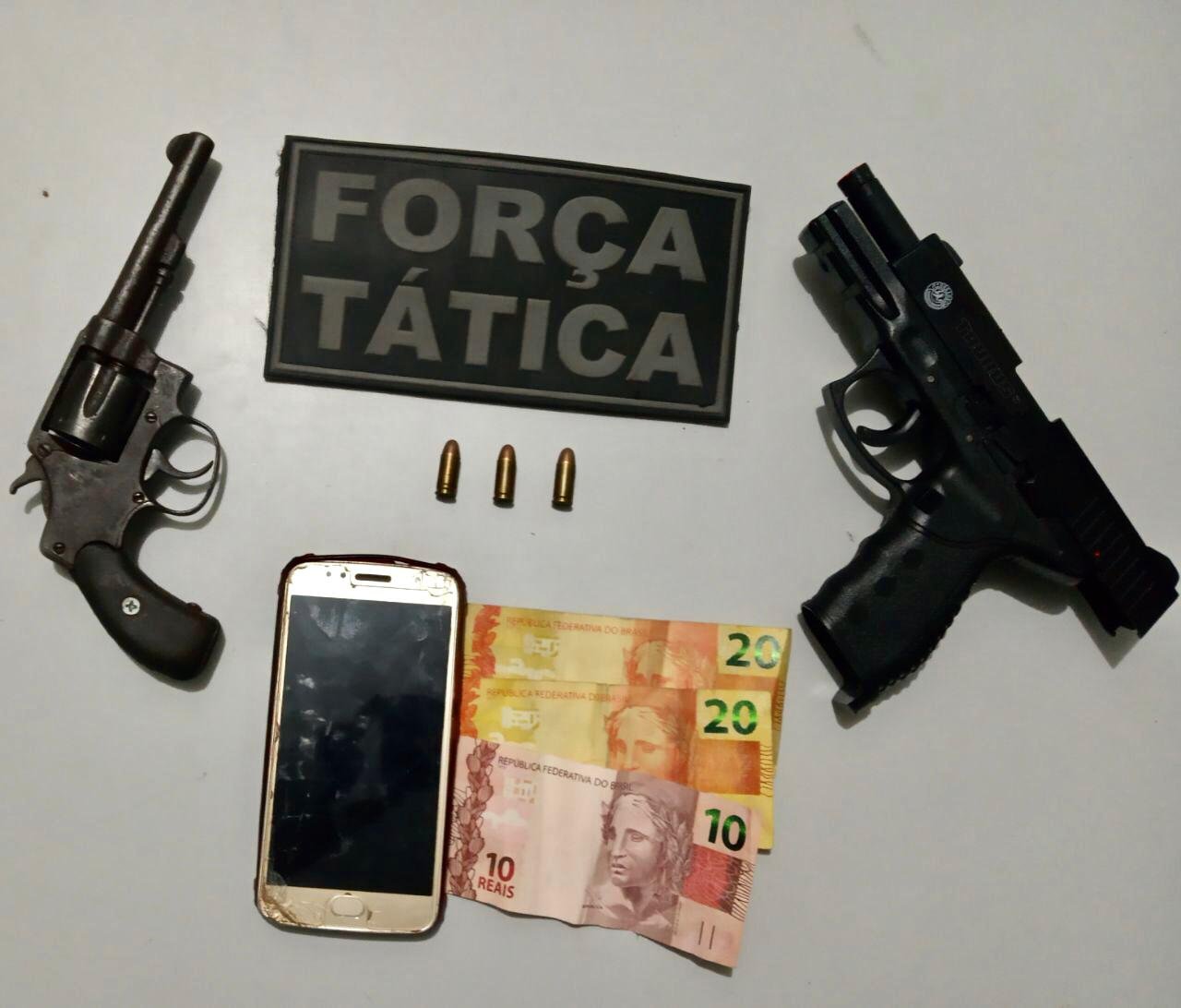A equipe iniciou a perseguição e logrou êxito em alcançá-los e realizar a detenção. Após a checagem pessoal, nada de ilícito foi encontrado com os mesmos, mas cerca de dois metros de distância do local da abordagem foi localizado o celular da vítima, um simulacro e uma pistola contendo munições intactas.