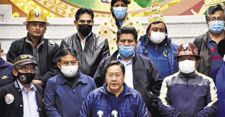 “Escutando as demandas do povo boliviano, as demandas setoriais, decidimos revogar a Lei 1386, a fim de abrir caminho para que não haja pretexto para continuar paralisando nossa economia”, disse Arce durante o anúncio feito na escadaria da Casa do Povo e onde foi acompanhado pelos membros do chamado Pacto de Unidade e pelo vice-presidente, David Choquehuanca.