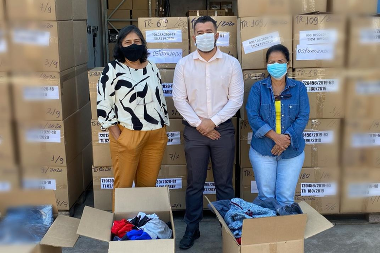 julho 21, 20219:42 amA Alfândega da Receita Federal em Corumbá destinou nesta terça-feira (19) cerca de 1 tonelada de mercadorias à Associação dos Ostomizados de Mato Grosso do Sul. Foram doados aproximadamente 50 mil reais em produtos diversos, entre eles agasalhos, roupas e cobertas.