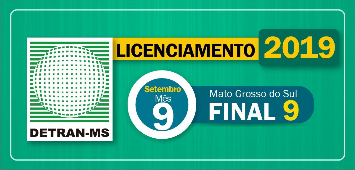 setembro 4, 201911:22 amOs veículos com placa final 9 precisam realizar o licenciamento em setembro. O procedimento é obrigatório, sendo que em cada mês é necessário regularizar a situação de acordo com o último numeral da identificação. Para pagar o licenciamento, o usuário precisa emitir a guia em qualquer agência ou mesmo pelo site www.detran.ms.gov.br com possibilidade de efetuar o pagamento nas agências do órgão ou em bancos conveniados.