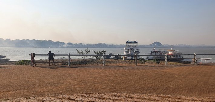 Outro efeito grave da seca é a queimada. Desde julho está proibido o incêndio no Estado, mesmo para quem tem licença ambiental. Mesmo assim, os focos continuam sendo registrados. Nesta sexta-feira (20), o fogo atingiu a área do Pantanal que fica em frente ao Porto Geral e quase atingiu uma pousada. O volume de fumaça chegou a Corumbá e a fuligem continuou sendo registrada na cidade mesmo um dia depois, no sábado (21).