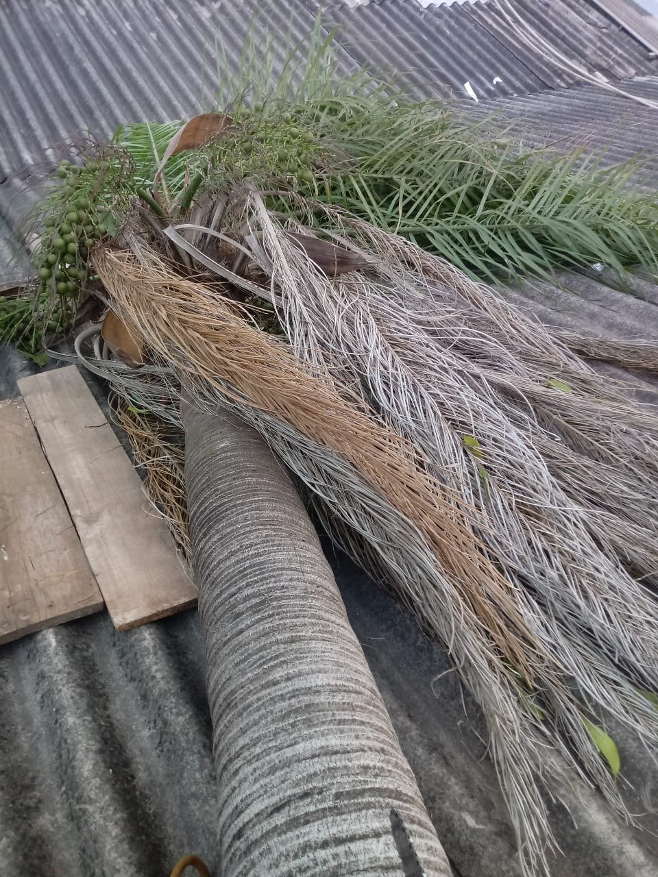 No bairro Generoso o bocaiuveiro caiu sobre uma casa, danificando o telhado, mas ninguém se feriu.
