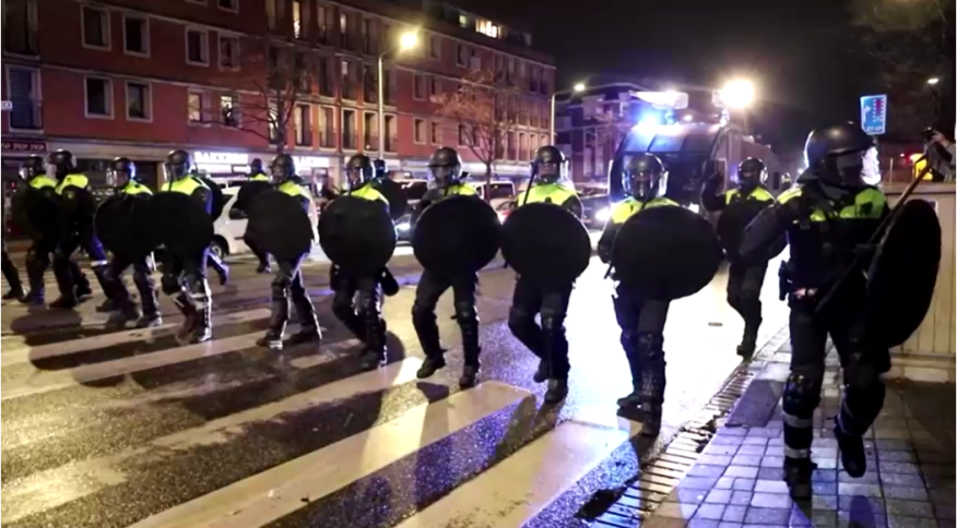 Os tumultos eclodiram na cidade de Haia neste sábado (20) por causa das novas medidas contra o coronavírus adotadas pelo governo holandês. Imagens feitas no local mostram a tropa de choque lançando canhões de água e atacando grupos de manifestantes.